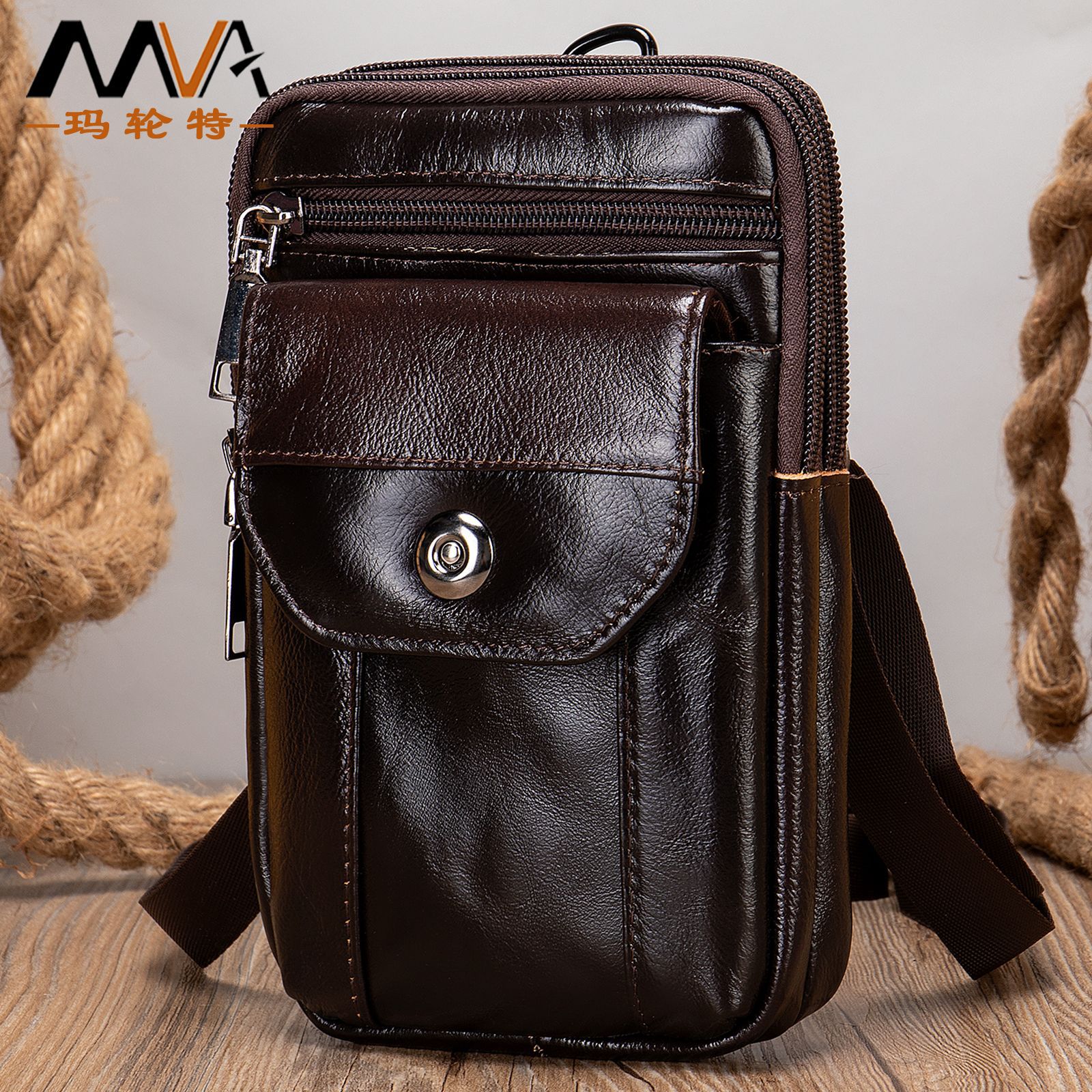 茶色の多ポケットバッグ中年男性ショルダーバッグ本革斜めショルダーバッグ多機能ベルト携帯電話のウエストバッグ卸売り