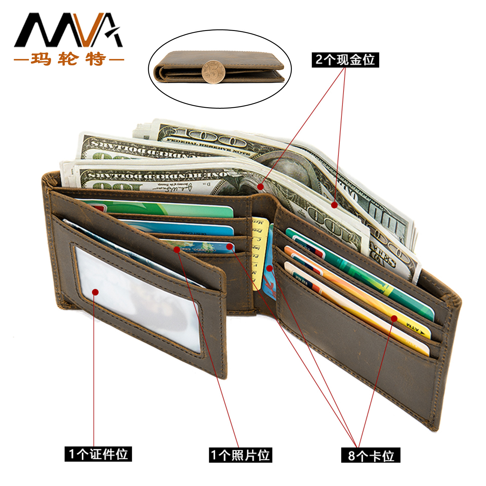 クロスボーダー短金男性本革財布レトロ狂馬皮薄い金クリップクレジットカードバッグrfid財布卸売り