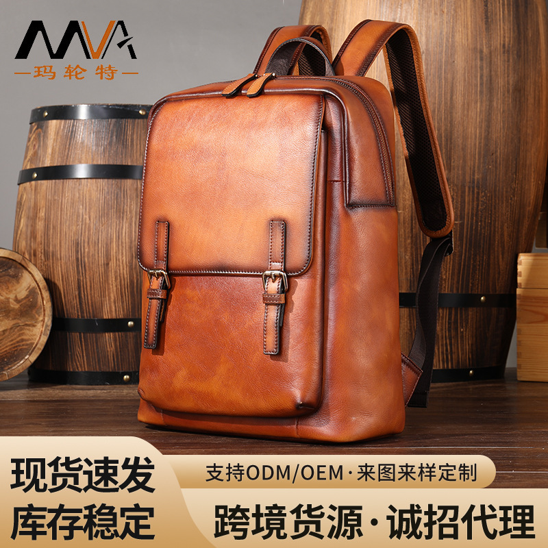 欧米のクロスボーダー男性本革リュックサック大容量トップ層牛革リュックサック大学生カバン卸売り