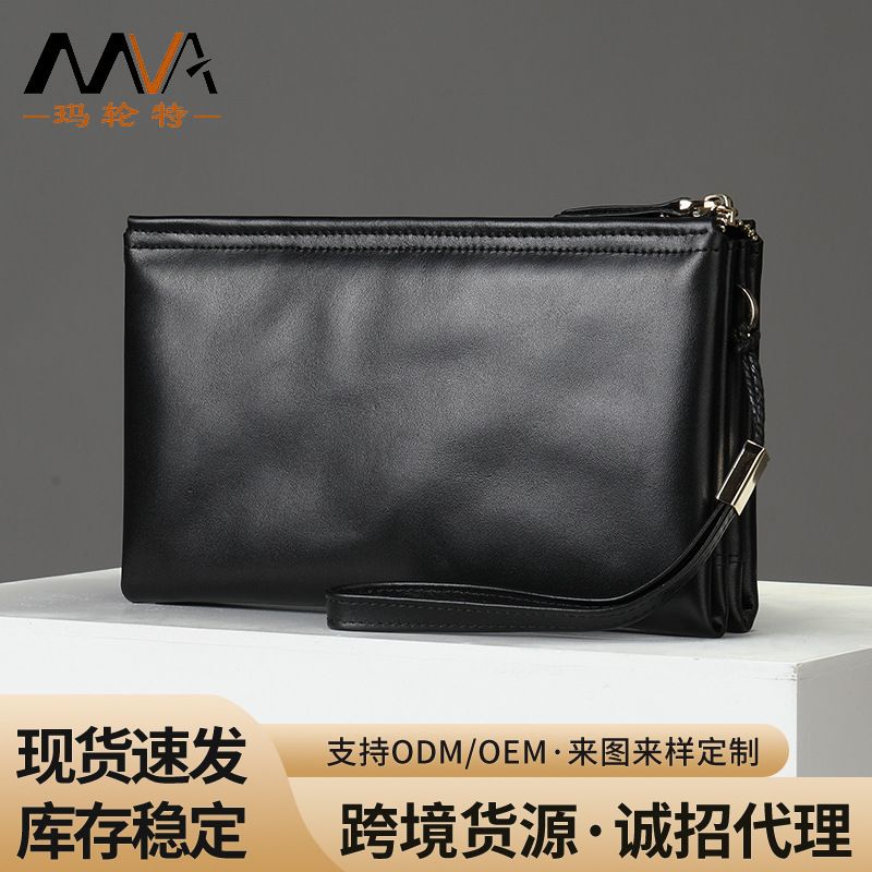 Mvaメンズハンドバッグ本革財布ロング大容量羊皮手首バッグビジネスソフト革財布