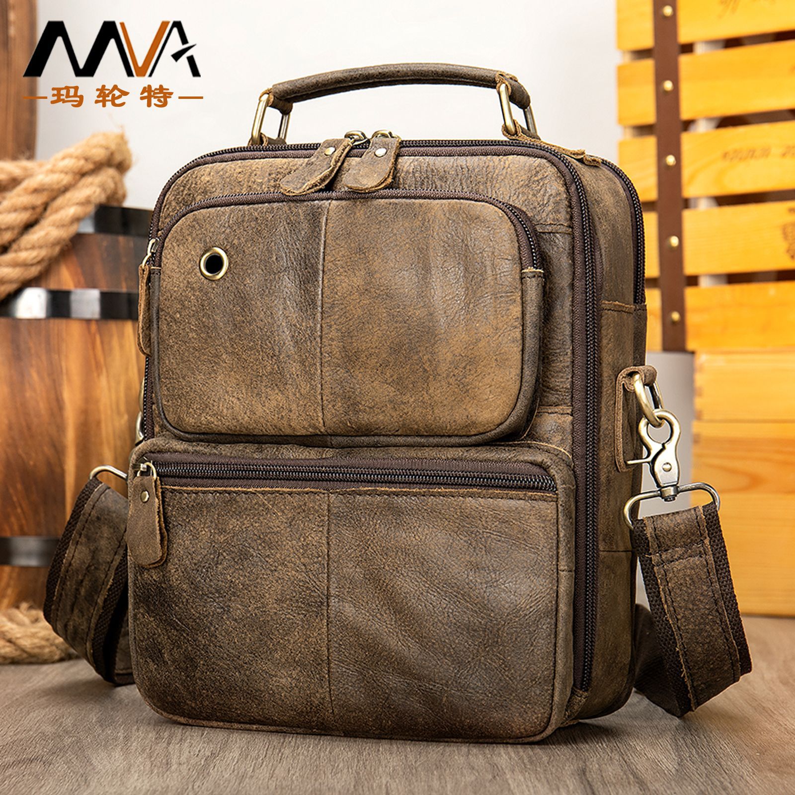 クロスボーダー男性ショルダーバッグ高級感レトロ多機能トップ層牛革ファッション男性カバン本革ショルダーバッグ卸売り
