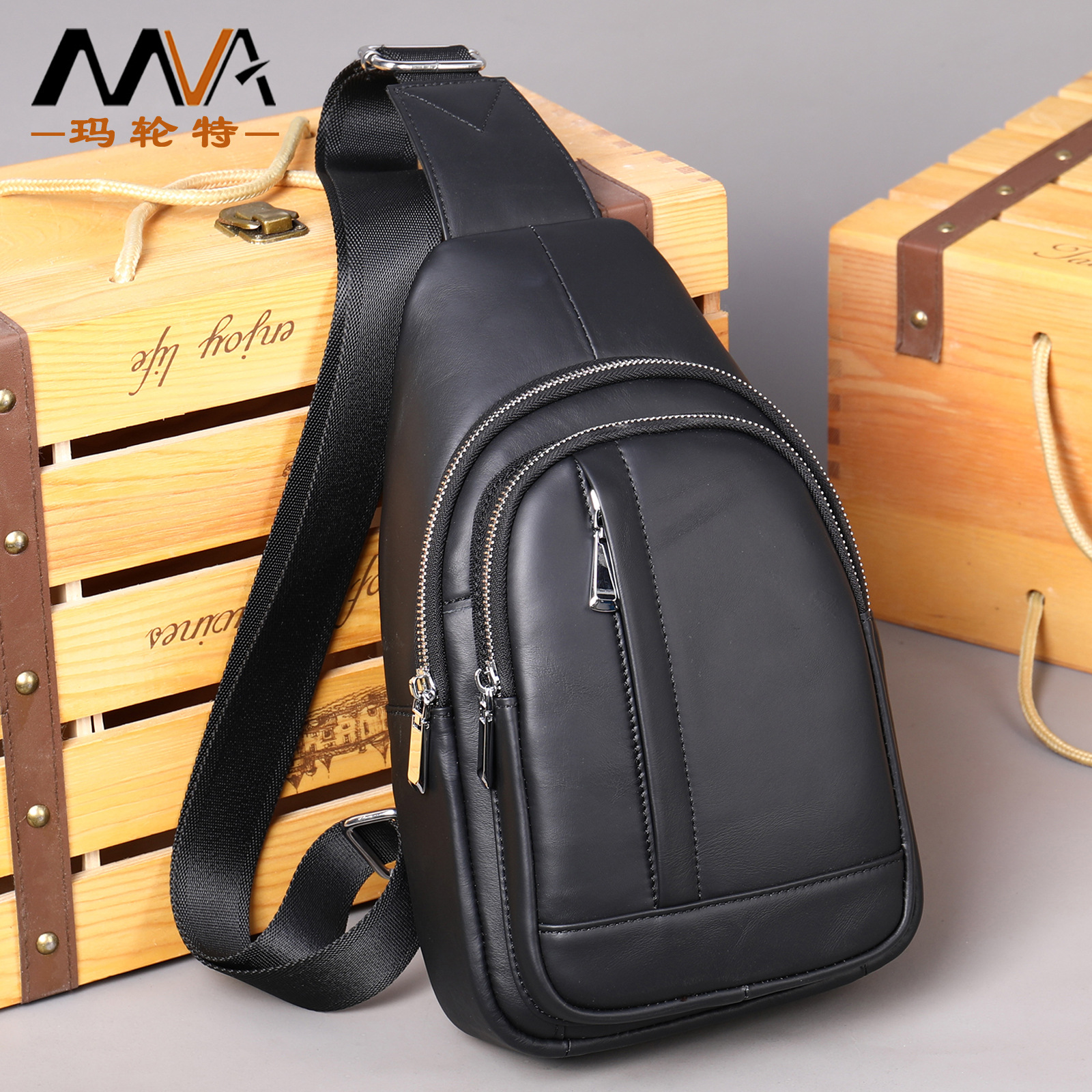 馬輪特男性胸前包本革男性包運動流行斜めショルダーバッグ男性頭層牛革斜めリュックサック卸売り