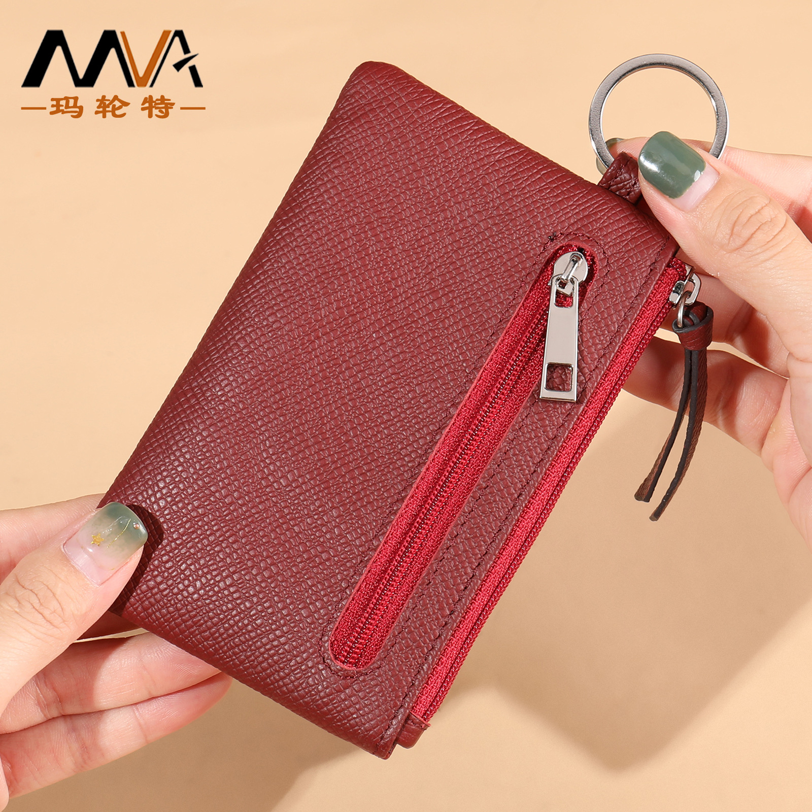 Mva現物卸売り男女真皮カードバッグシンプル携帯運転免許証カードカバートップ層牛革ジッパー小銭入れ