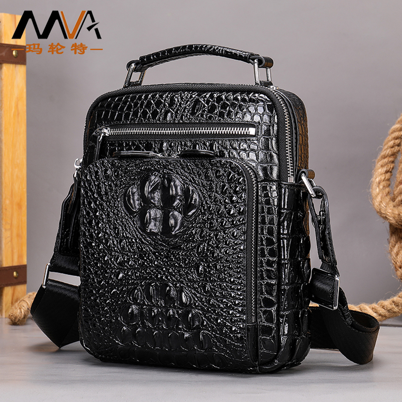 国境を越えた新型ワニ紋男性バッグ男性シングルバッグ真皮ビジネスシングルバッグ牛革カジュアルバッグ