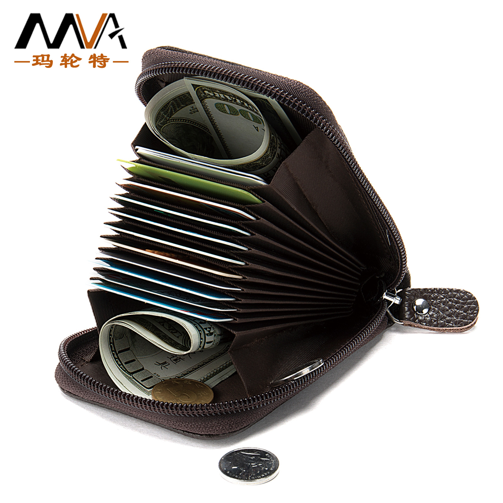 クロスボーダーカードバッグ本革オルガンカードバッグマルチカードホルダートップ層牛革財布カードバッグ一体多目的