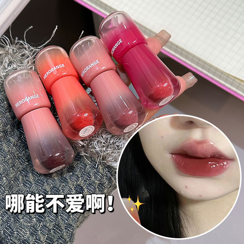 Herorange ~ 軽透瑠光鏡面唇釉薬水光純欲ガラス唇が白くて持続的にカップリップがつきにくいです。