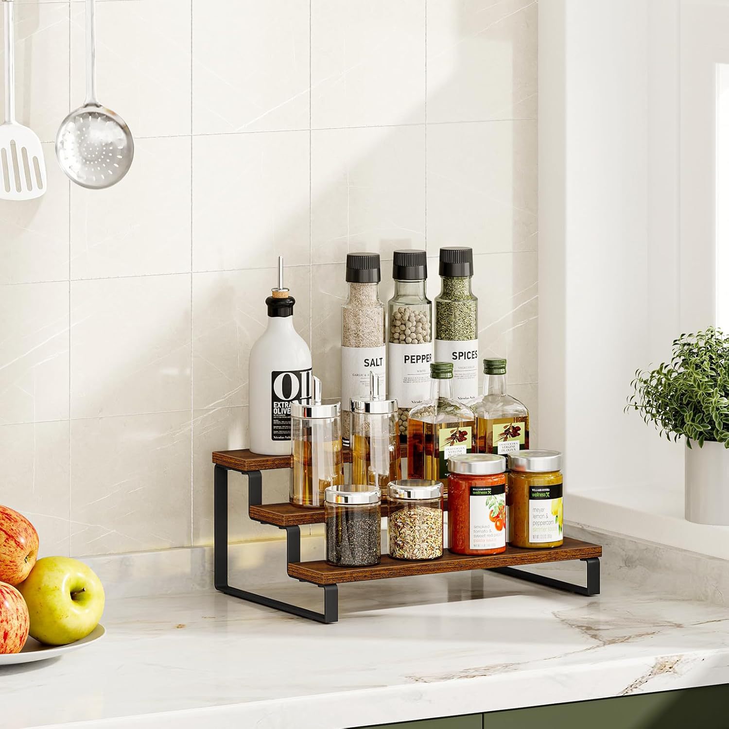 木製キッチン整理棚鉄木結合三層収納棚クリエイティブテーブル式調味料香料収納棚