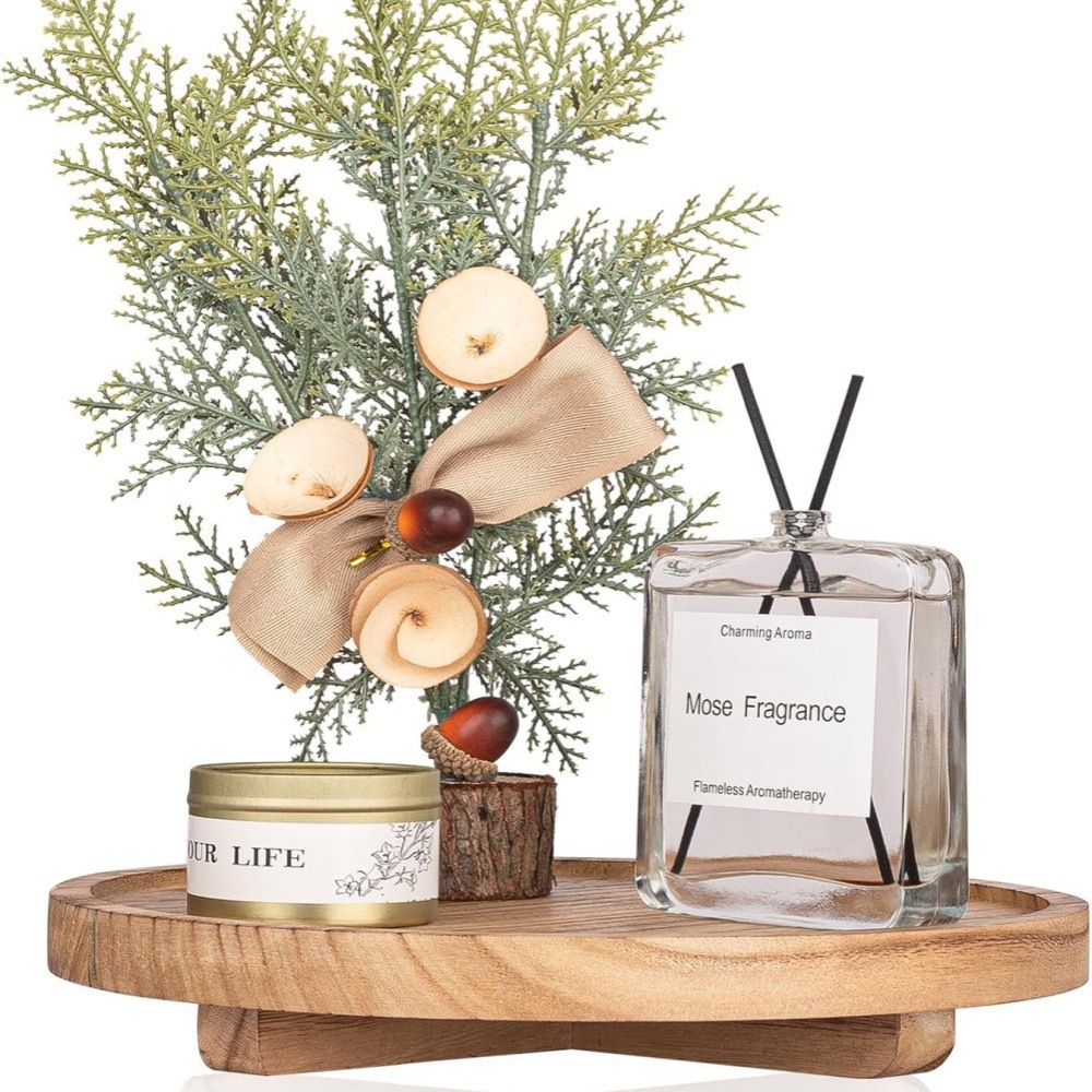 実木円形装飾トレー木製化粧品棚収納棚キッチン装飾トレー展示棚