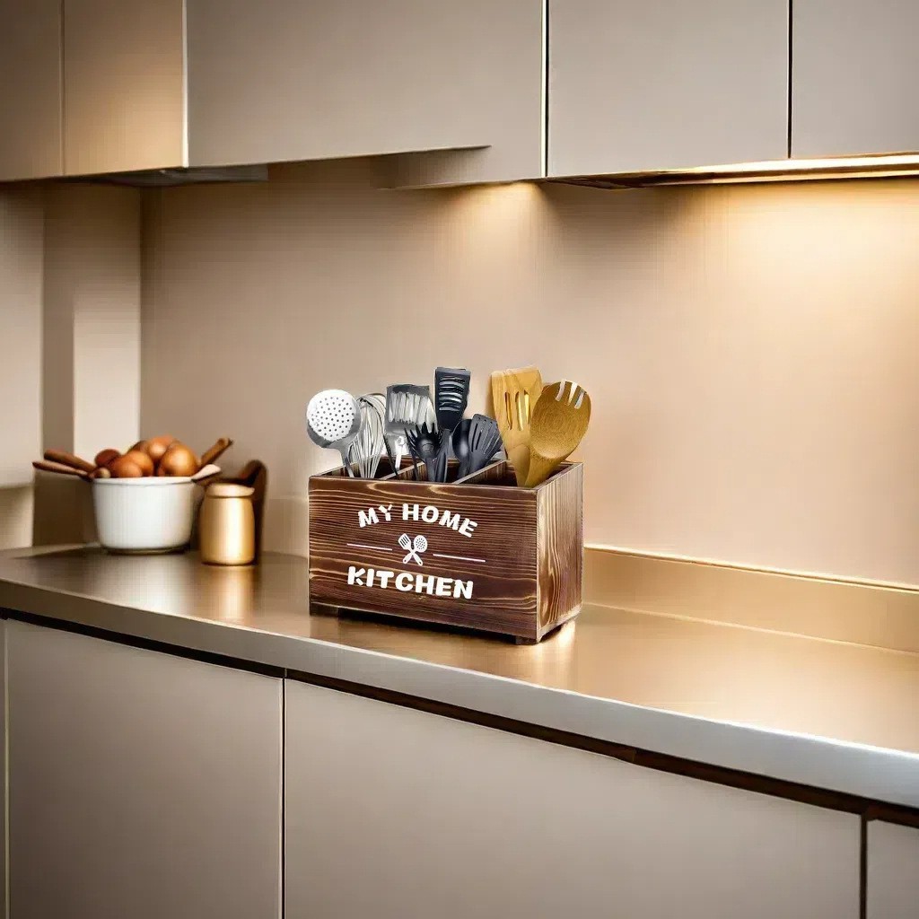 木製キッチンデスクトップ収納ボックス収納分格料理道具整理ボックスナイフフォークスプーン収納棚収納ボックスメーカー