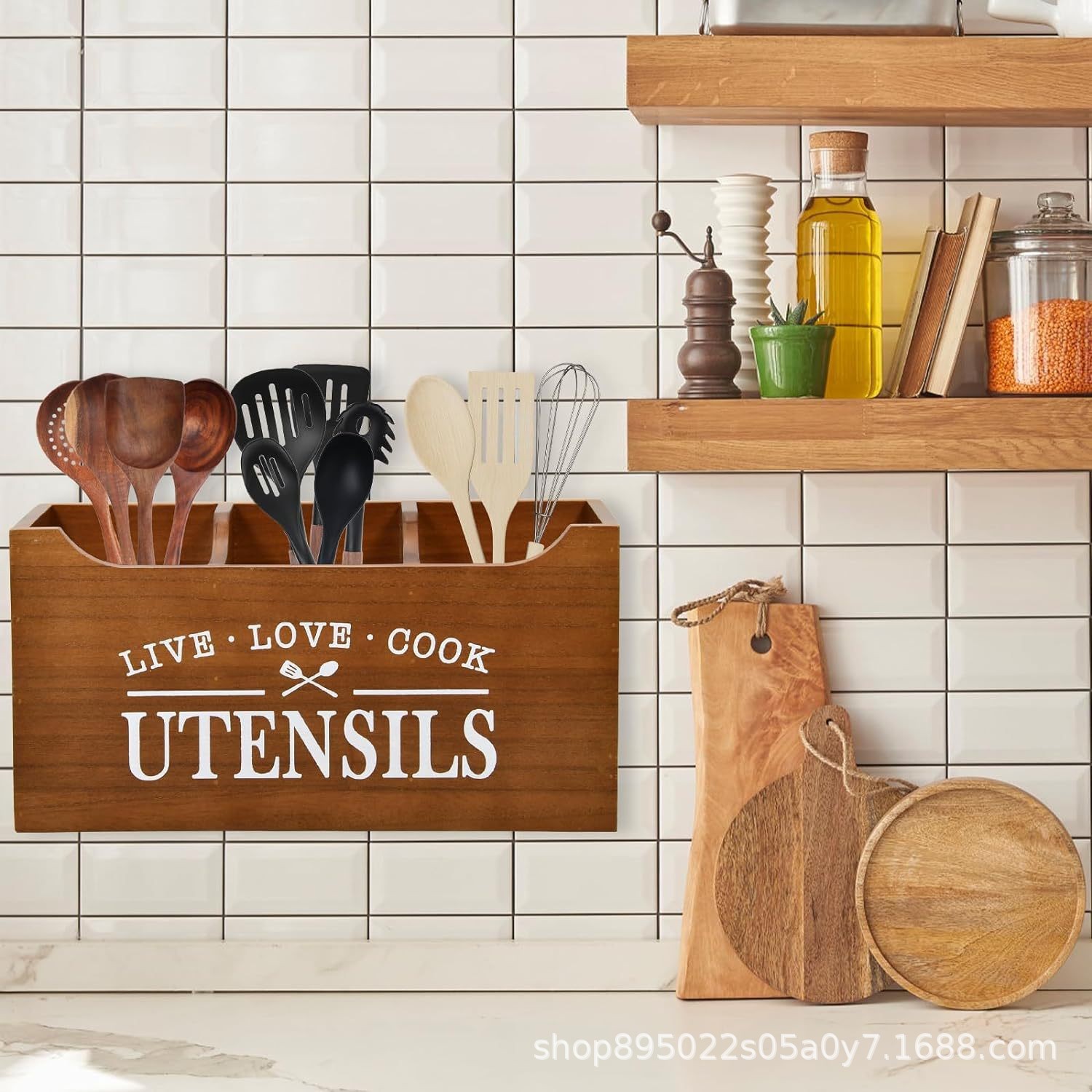 キッチン食器収納ケース袋排水穴ナイフフォーク箸入れケース木製手持ち調理道具収納ケース