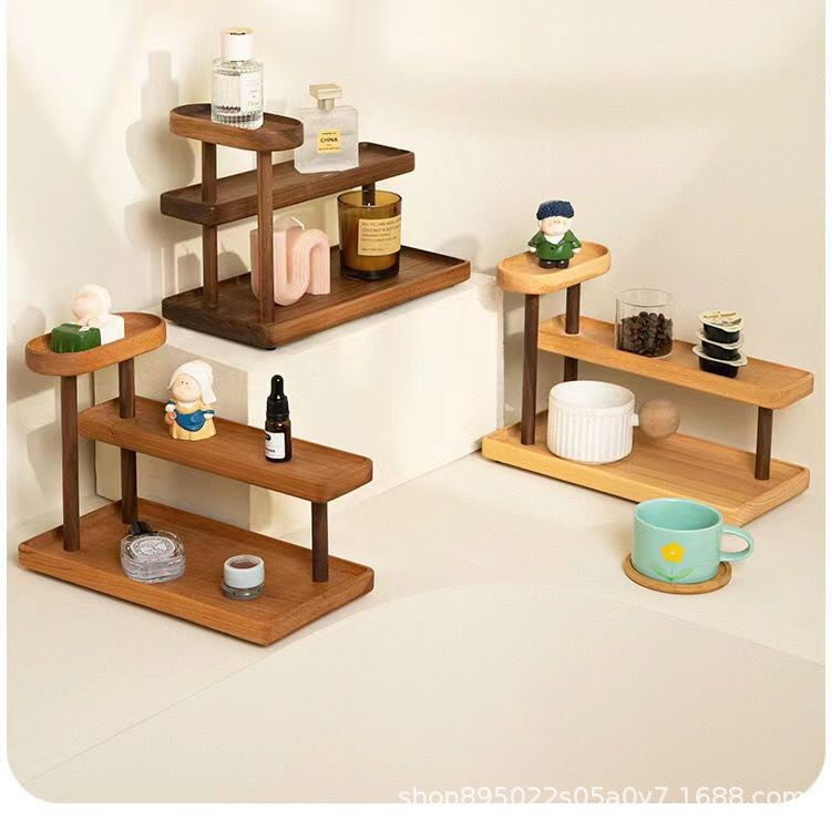 モダンでシンプルな無垢材の収納ラックホームベッドルーム多層デスクトップ収納ラックデスクトップ収納花瓶収納ラック
