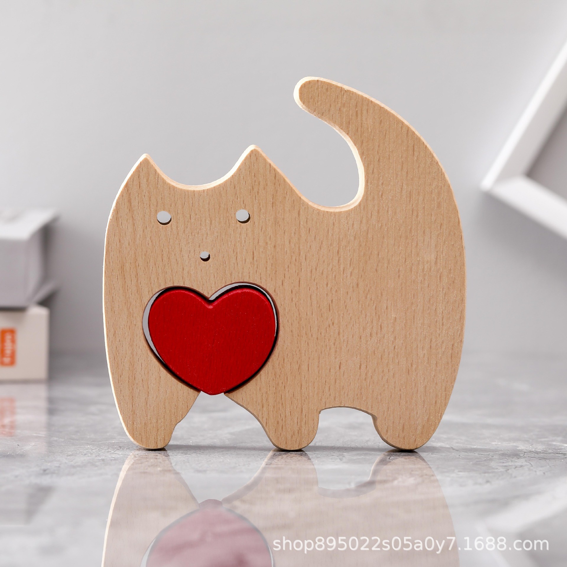 国境を越えた新商品かわいい愛の子猫の木製工芸品の飾り物のデスクトップ装飾メーカーは現物卸売りを提供している