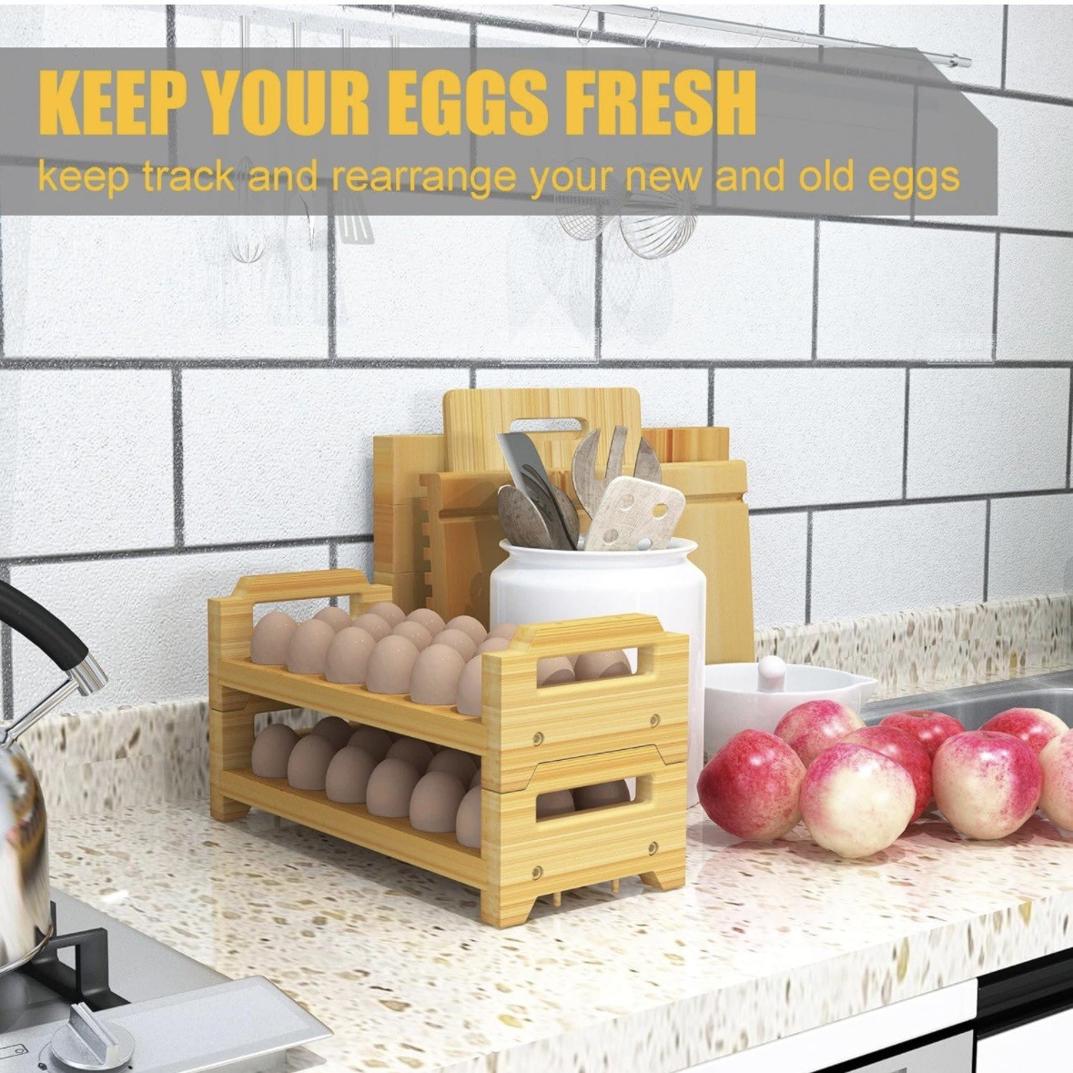 キッチン木製卵トレイ冷蔵庫収納ケース木製家庭用テーブルは卵棚を積み重ねることができる