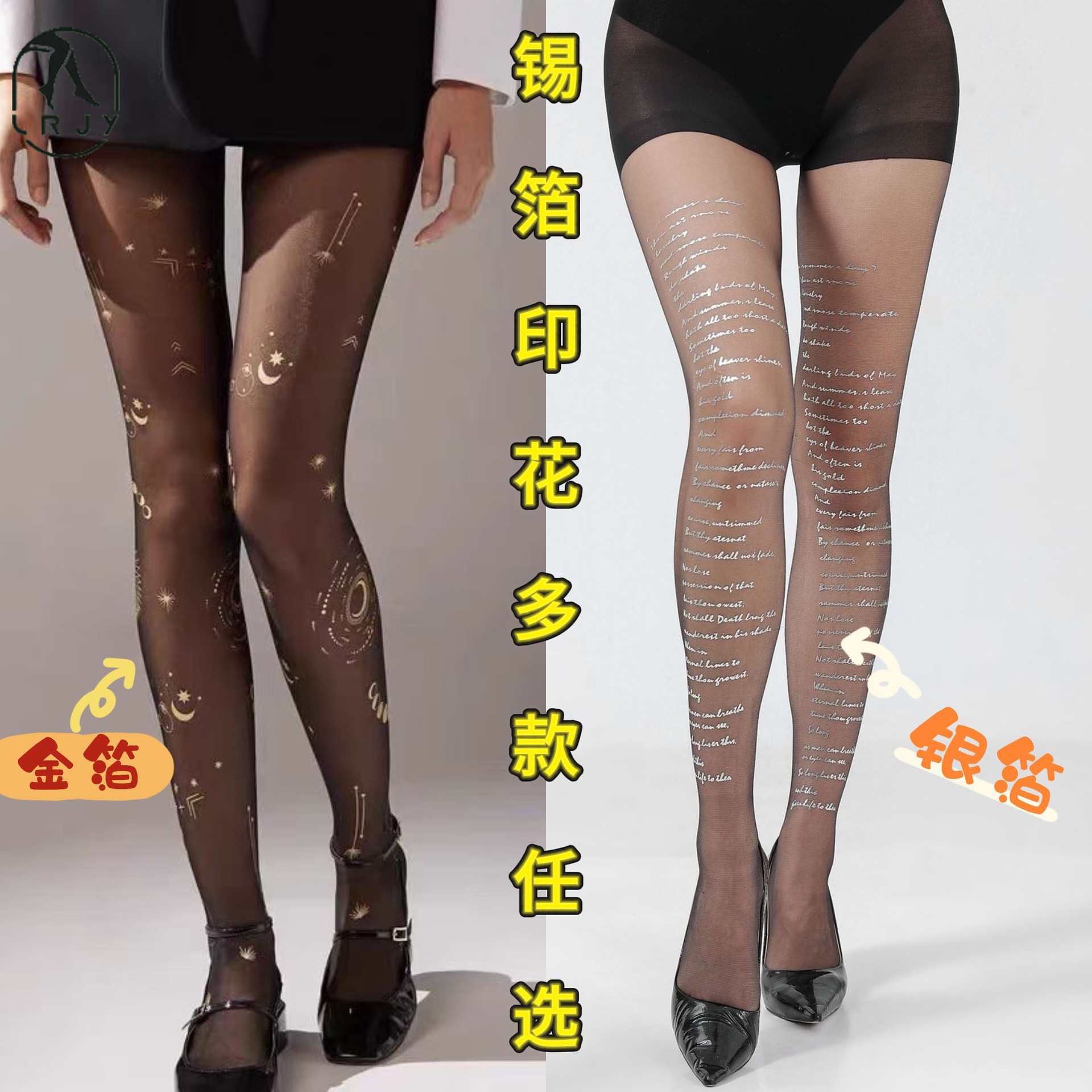 アルミ箔プリントスターストッキング、外国貿易用大きいサイズストッキング、シルバースター、夏用薄手女性用、破れにくいセクシーな黒ストッキング