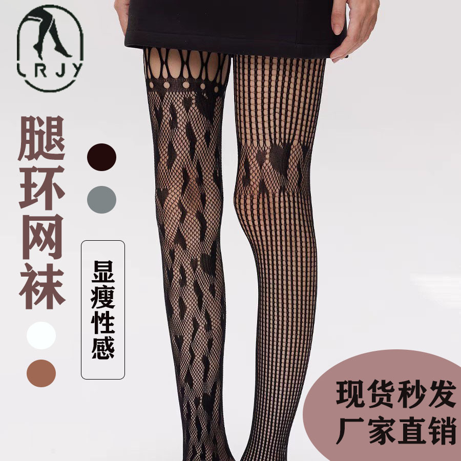 中空レッグリング AB ジャカードメッシュソックス薄い夏の女性のセクシーな黒のシルクストライプ底ソックス網タイツ卸売