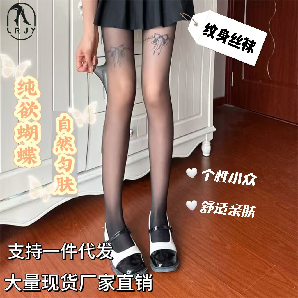 新しいホットガールタトゥーバタフライストッキングサブカルチャータトゥーニッチロリータストッキングトレンディで多用途な薄い