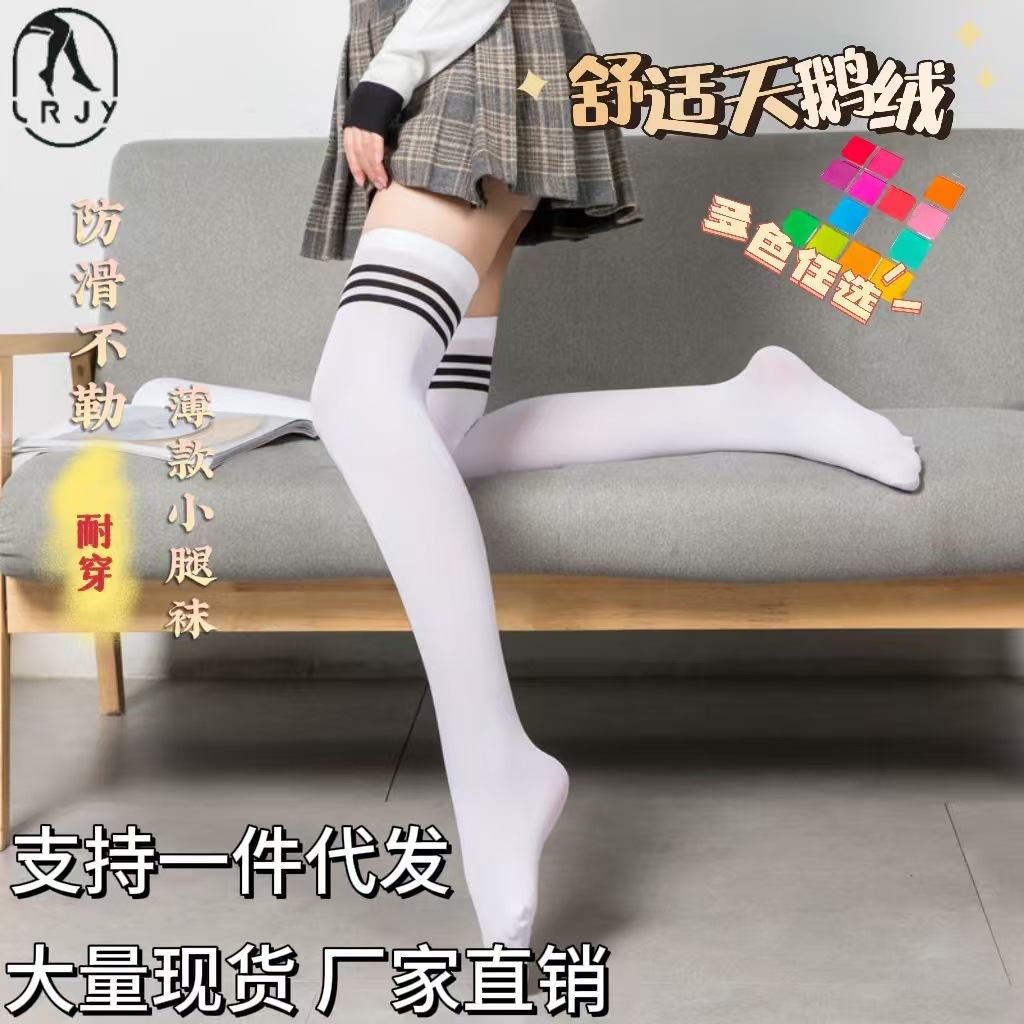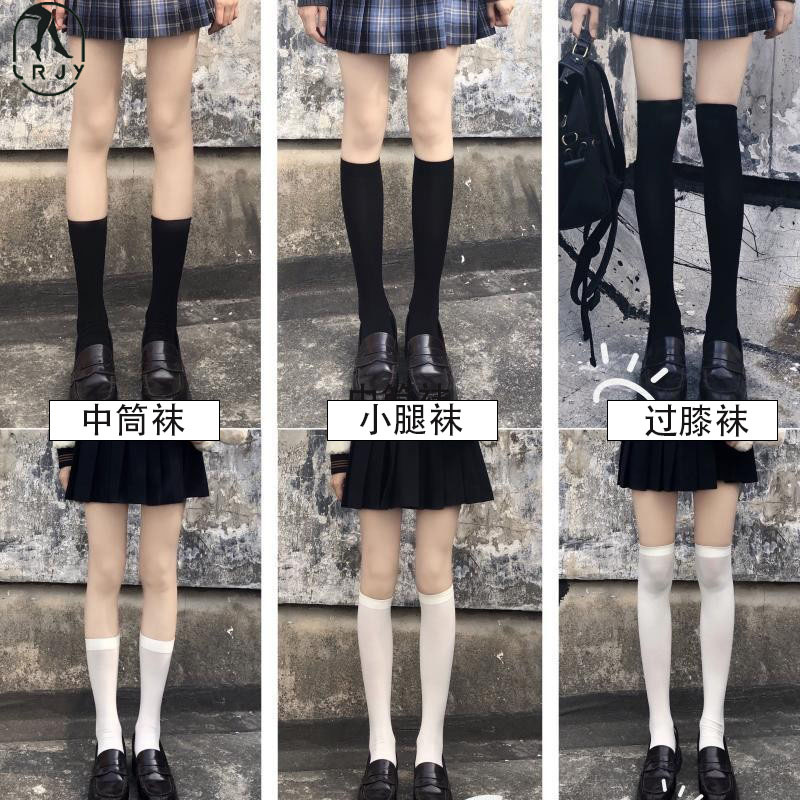 Jkギャルの学生のビロードの純黒の短い中筒のすねの半分は膝の白いストッキングの子供の夏の春秋の金を切ります。