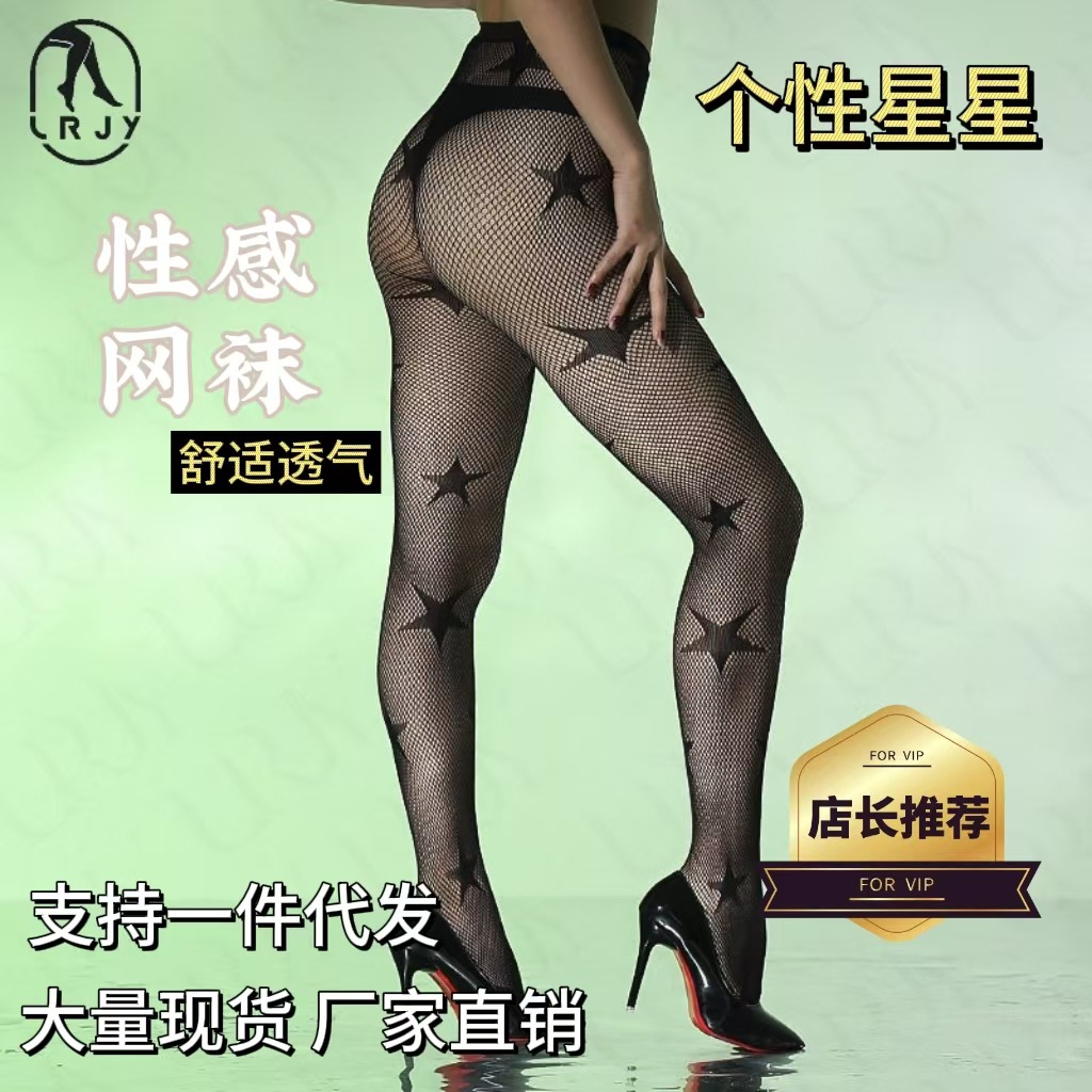 五芒星網タイツセクシーな星網タイツ女性の夏のジャカード絶妙な包装ナイロン黒靴下