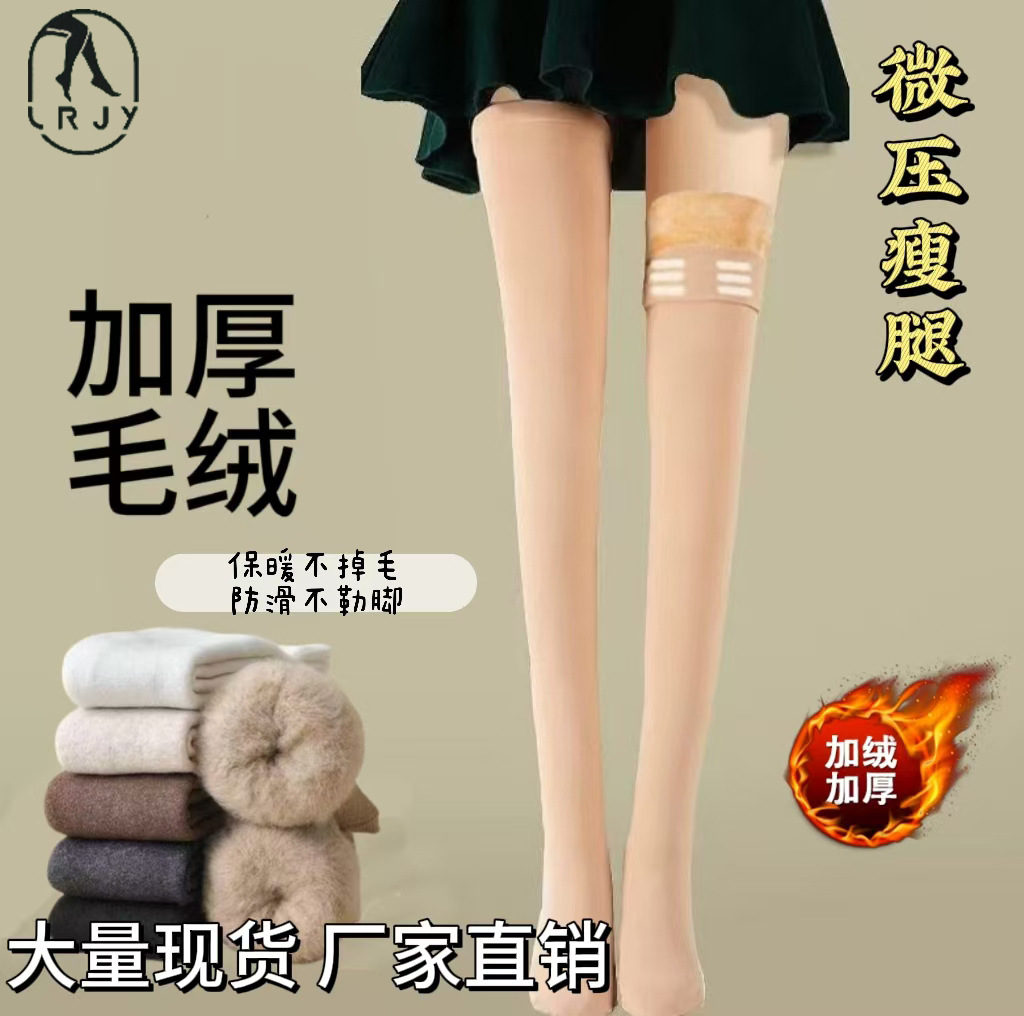秋冬の新型のベルベットは肌を厚くしてズボンの女性の大きいサイズの肌を透かすズボンの偽の透肉の一体の靴下のズボンのクロスボーダーを厚くします。