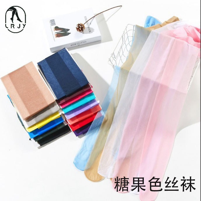 芯入り糸キャンディーカラーストッキング カラフル極薄 日本風 ひっかかりにくい 透明 ダークグリーン ブルー パンスト 極薄 レディース ピンク