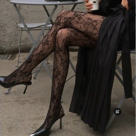 ジャカード柄の花柄網タイツ、春夏用薄手レディース透かし彫り通気性セクシー黒ストッキング網タイツ