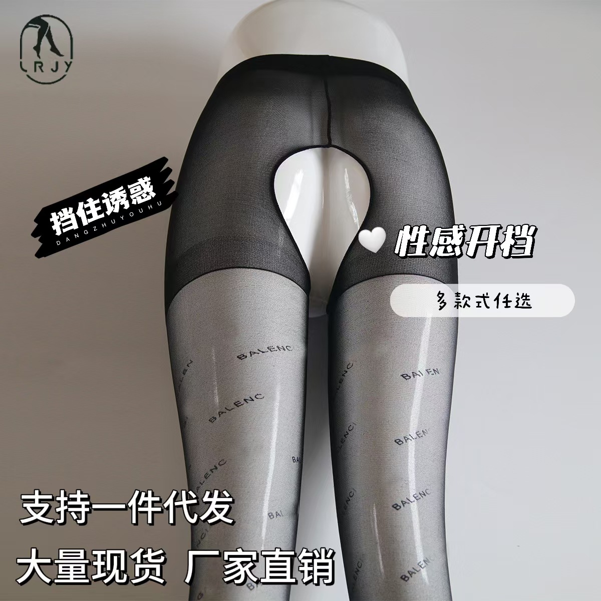 薄型オープンクロッチ文字入りストッキング、B級ブランドの滑り止め付きベルベット素材、自由にカットできる超薄型ソックス