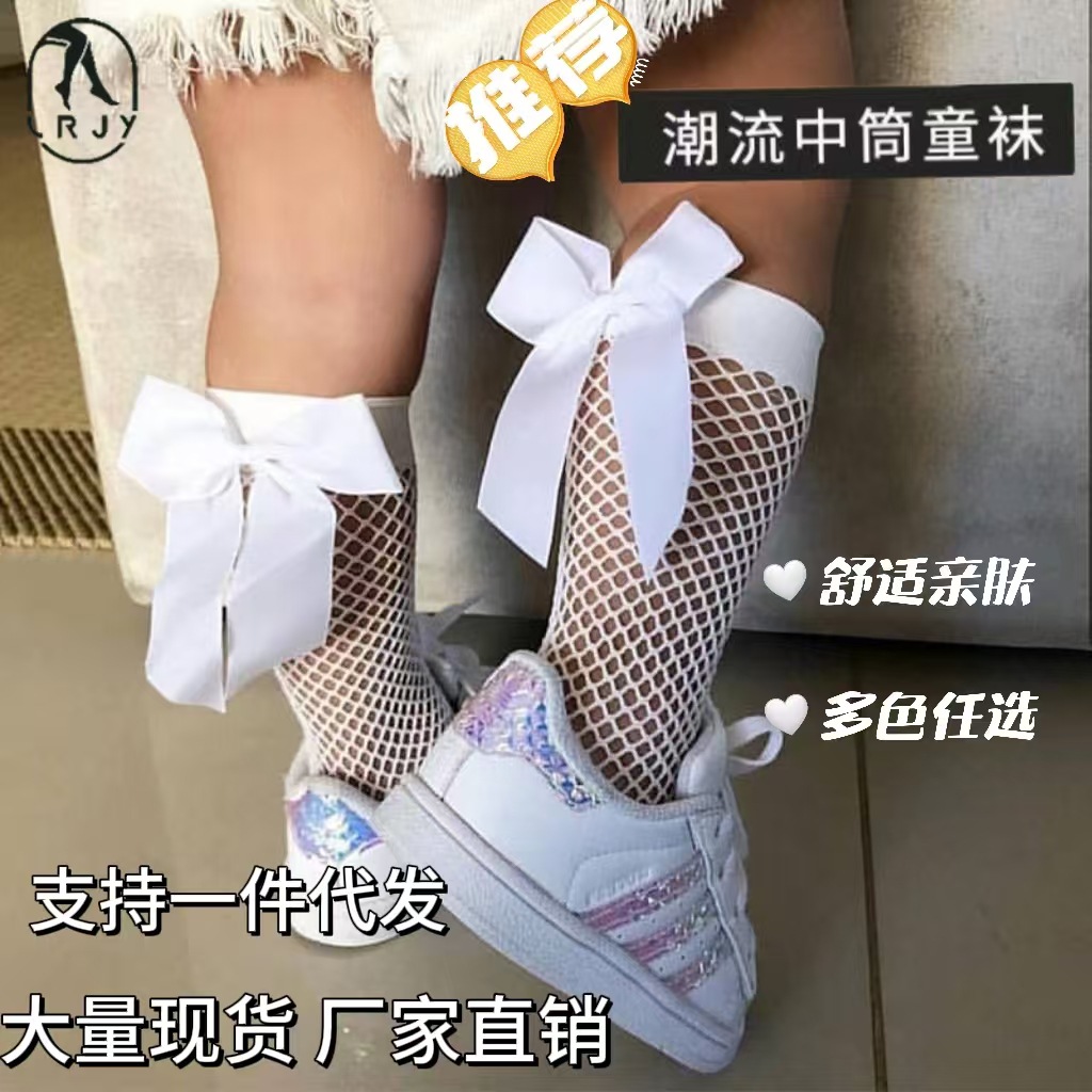 女の子用蝶結び付きミモレ丈網タイツ、欧米風透かし彫りスイートプリンセス風レースミモレ丈ソックスメーカー、スイートスタイル
