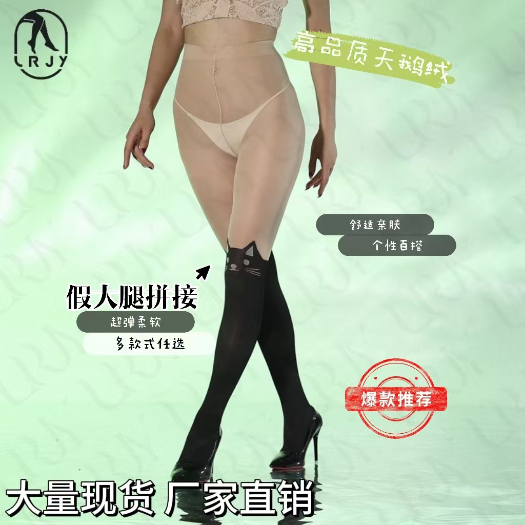 パッチワークパンスト、フェイク太ももワンピースストッキング、春秋薄手フェイクハイソックス、フェイクふくらはぎJK肌色オーバーニー