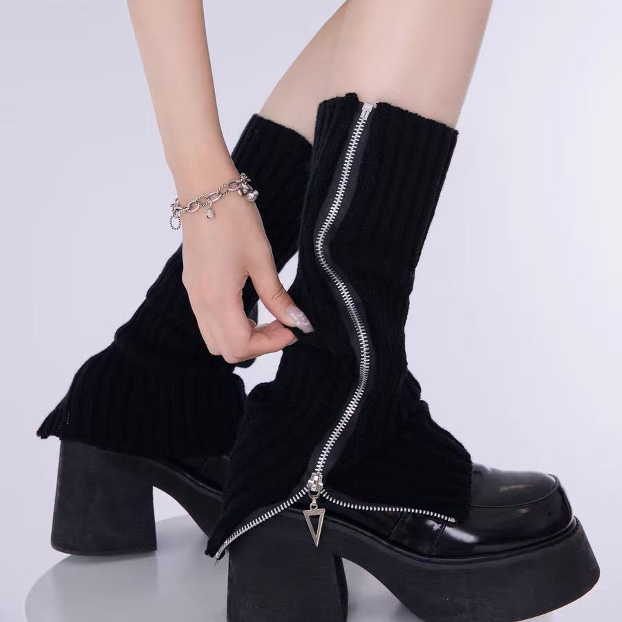 JKジッパーソックスカバー Y2Kサブカルチャー パイルソックス レディース 夏 薄手 ホットガール レッグカバー ブラック カーフソックス 中丈ソックス 日本風