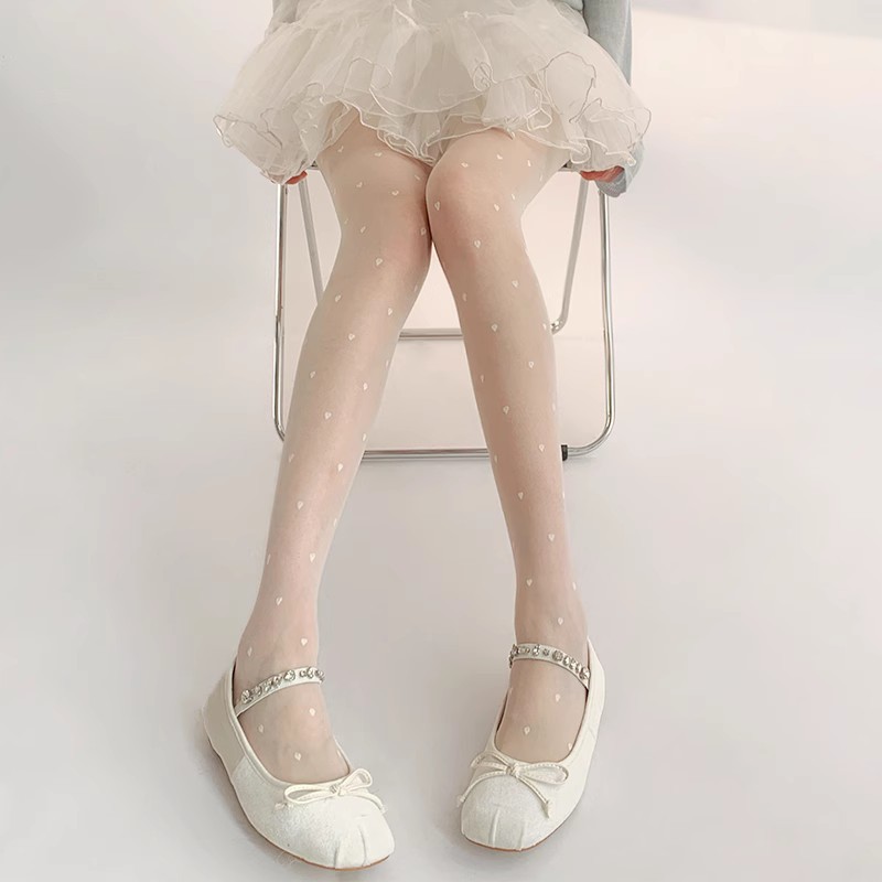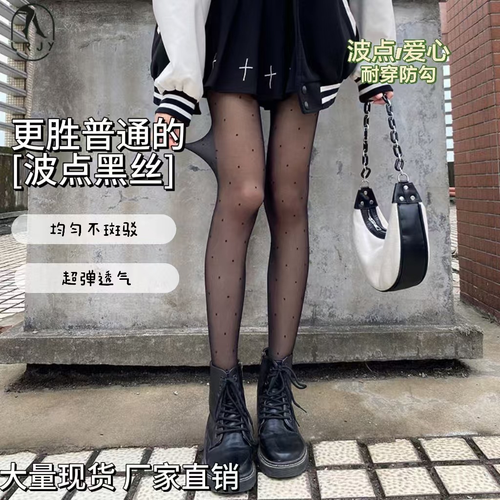 小爱心波点提花丝袜夏季薄款纯欲洛丽塔白丝黑丝袜子防勾丝连裤袜