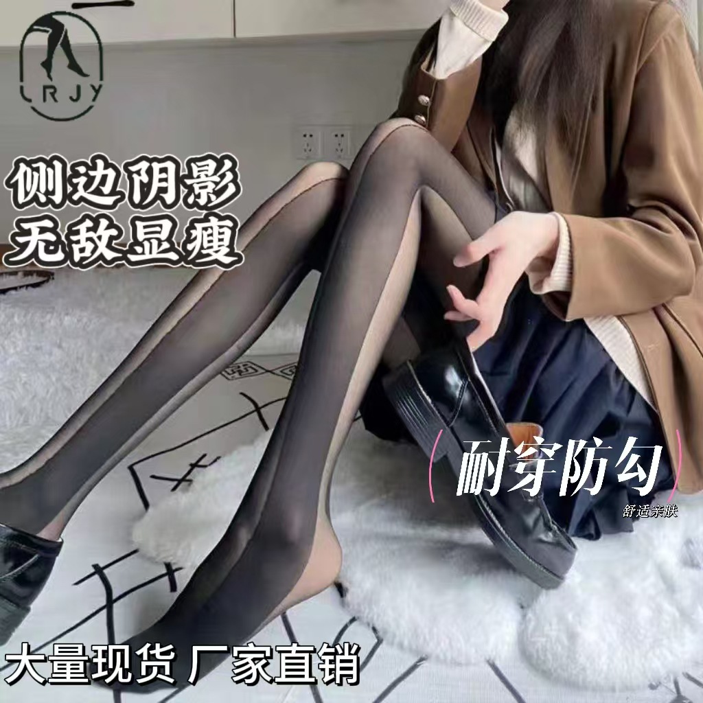 サイドシャドウで細く見えるストッキング 春夏薄手 レディース ひっかかりにくい 縦縞 美脚 セクシー ブラックストッキング 日本風