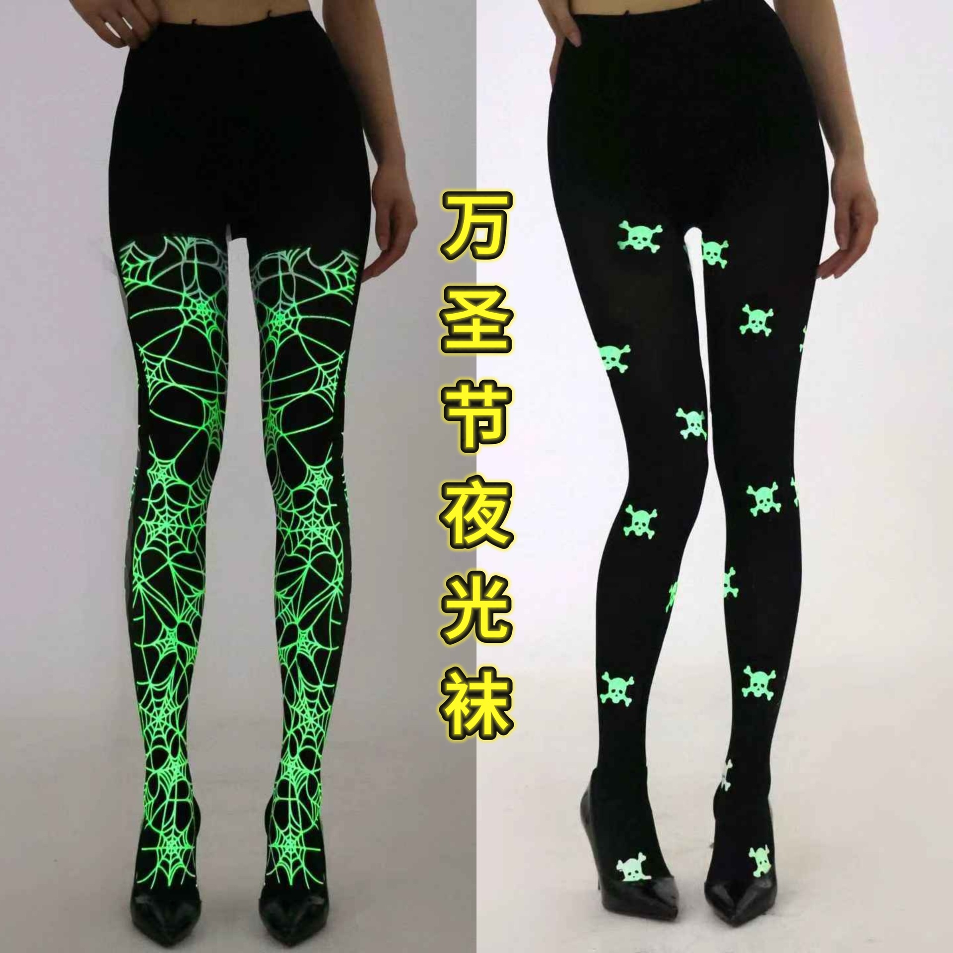 クロスボーダーハロウィン発光クモの巣蛍光色のストッキングベルベット薄い抗スナッチプリントストッキング女性用