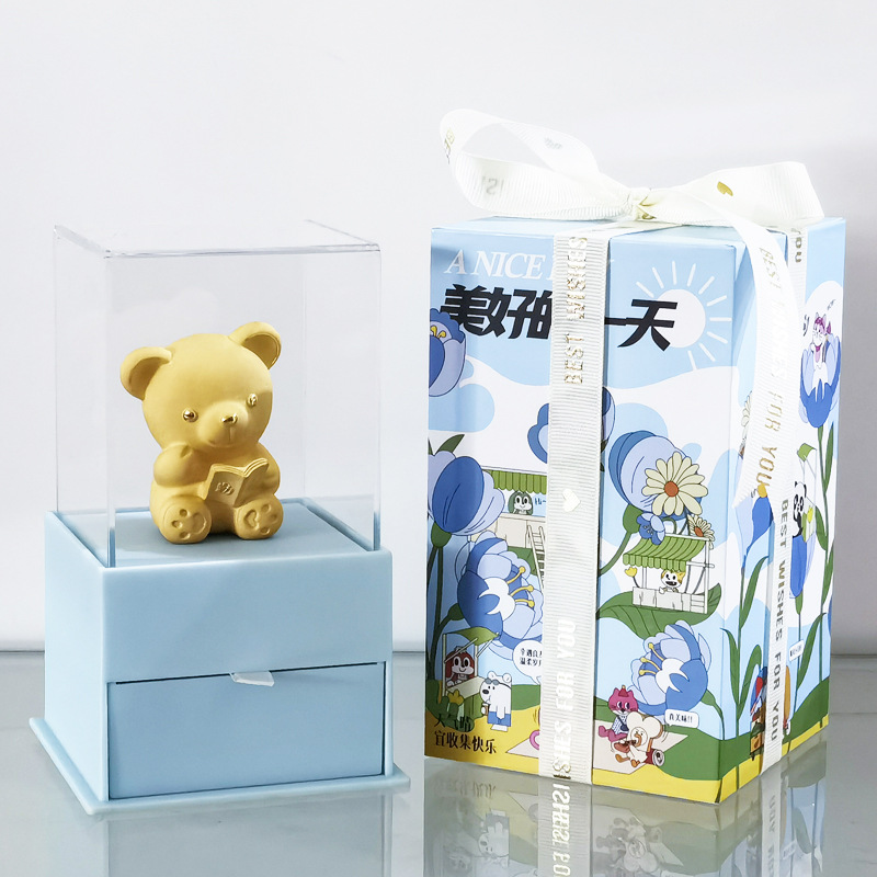 シャキンの無邪気な熊の金の置物の創意的な贈り物の祝日の友達の学友の贈り物の贈り物の励ましの志の賞品のお土産
