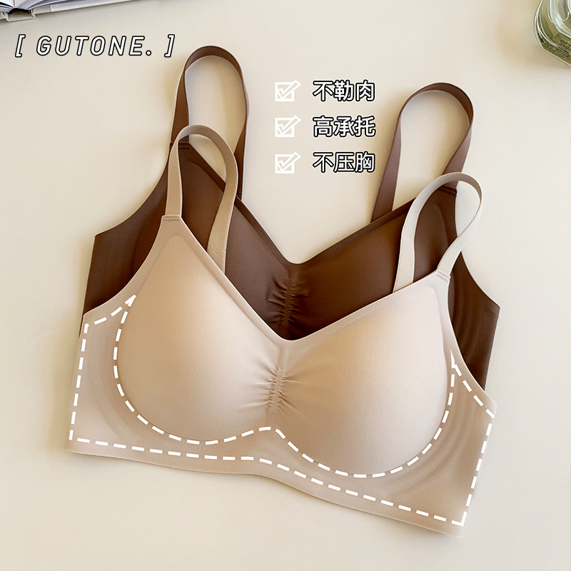 Gutoone 0061日本の無痕下着の女性の胸は薄いタイプの裸感を集めて、鋼の輪の柔らかい支持の文のブラジャーがありません。