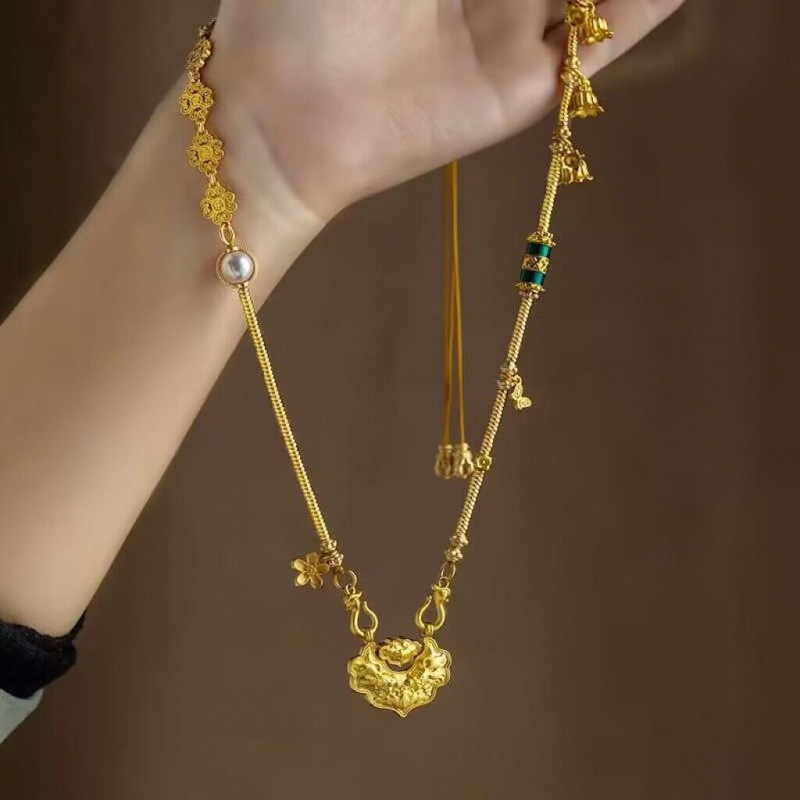 本格的に上陸した錦鯉が金持ちになった印鑑は、金の鎖を割った女性レトロで高級な軽贅沢な手串ファッションアクセサリーを吊るしている
