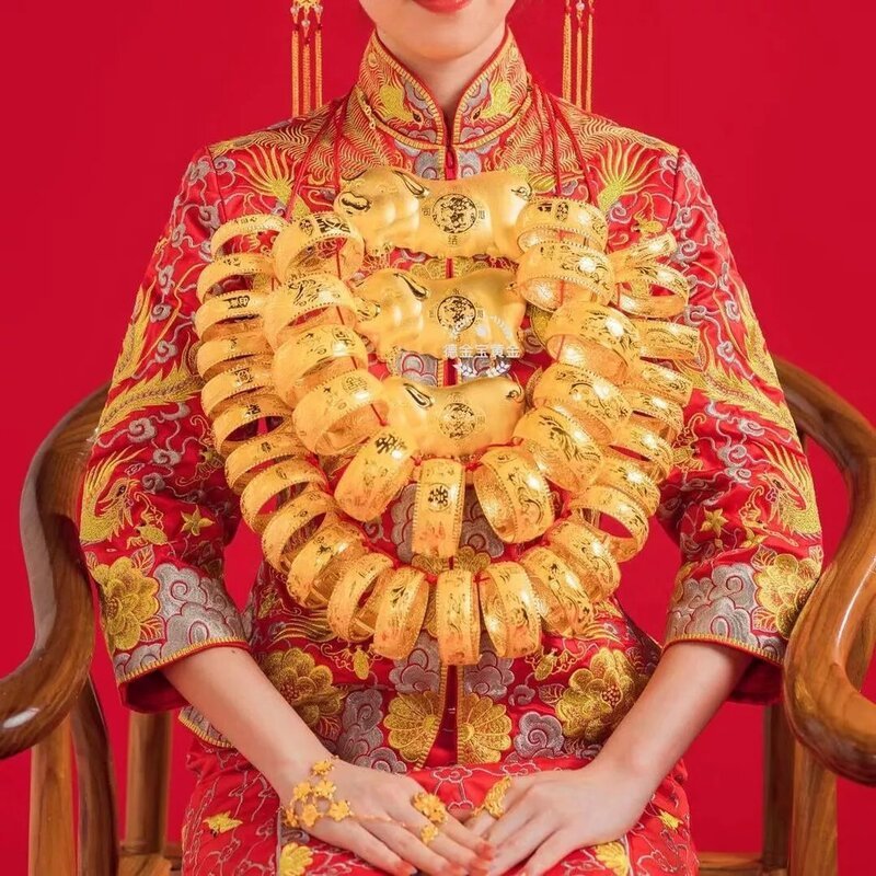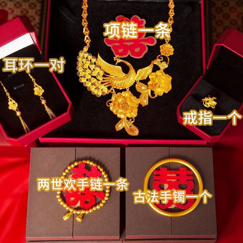 本格的な砂金結婚祝いのブレスレット女性の結婚龍鳳の腕輪は黄金色の花嫁と結婚します。