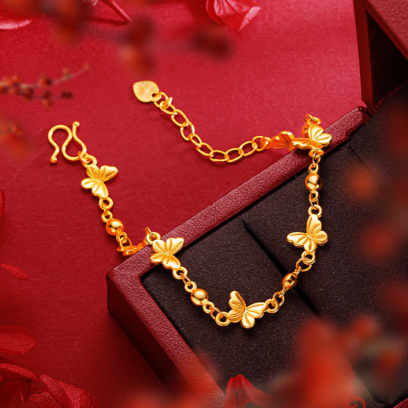 本格的な起爆金24k金鎖女金999小衆は痩せた蝶の手串5gの高級な甘いファッションを送っている
