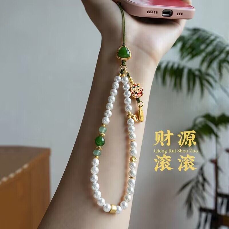 本格的な天然貝珠和田碧玉携帯電話のストラップ手首の丈夫で丈夫な携帯電話のストラップ
