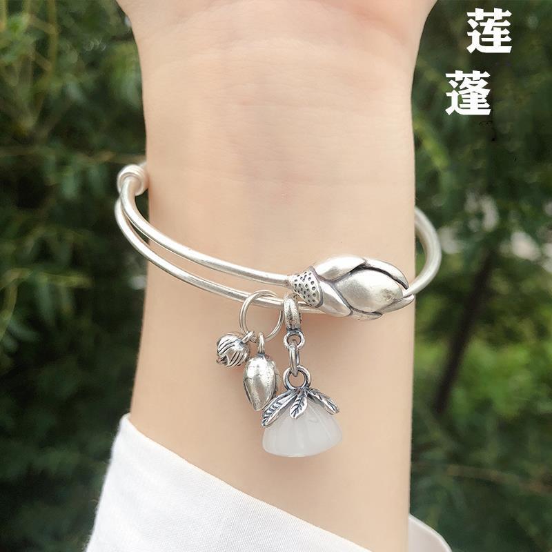 正統の民族風の中国風の古典は古い蓮の古風の銀の腕輪の女性の鈴の復古の文芸の古法をして腕輪を引きます。