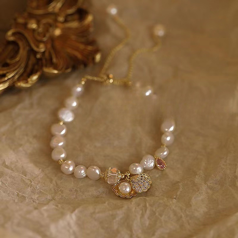 本格貝殻水晶淡水真珠ブレスレット2024年新型軽豪華小衆レトロファッション個性高級感