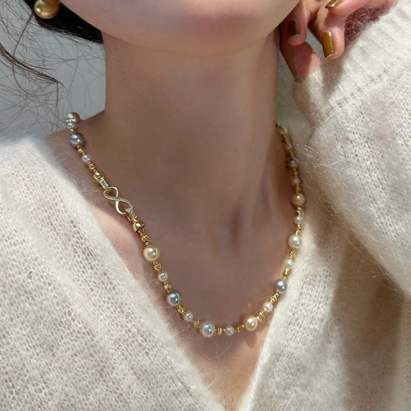 本格的なキャンディー色の施家真珠のネックレスは女性の秋冬を飾っています。