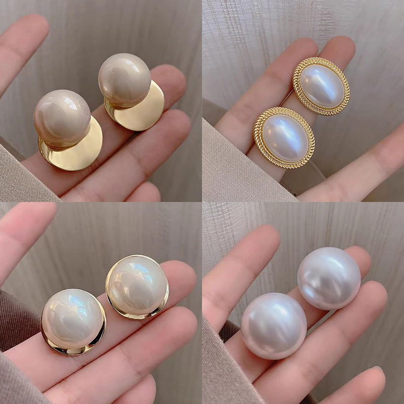 本格的な秋冬のイヤリングの気質の超巨大な真珠のピアスの女性S925銀の針の高級感のinsの冷たい風のイヤリング