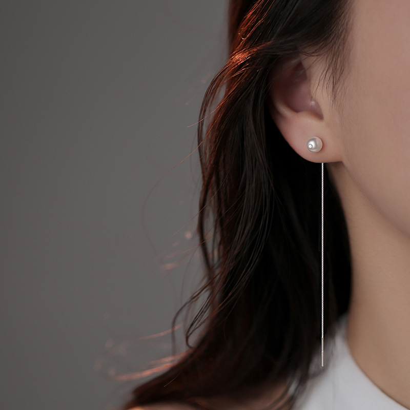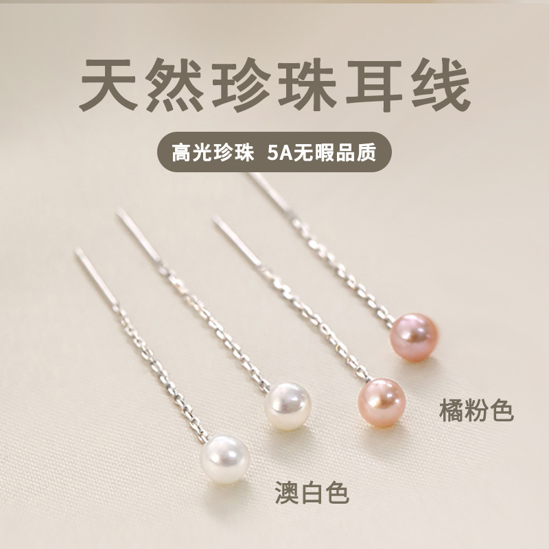 本場999純銀天然淡水真珠耳糸ピアス気質流蘇耳ペンダントシンプルなイヤリング