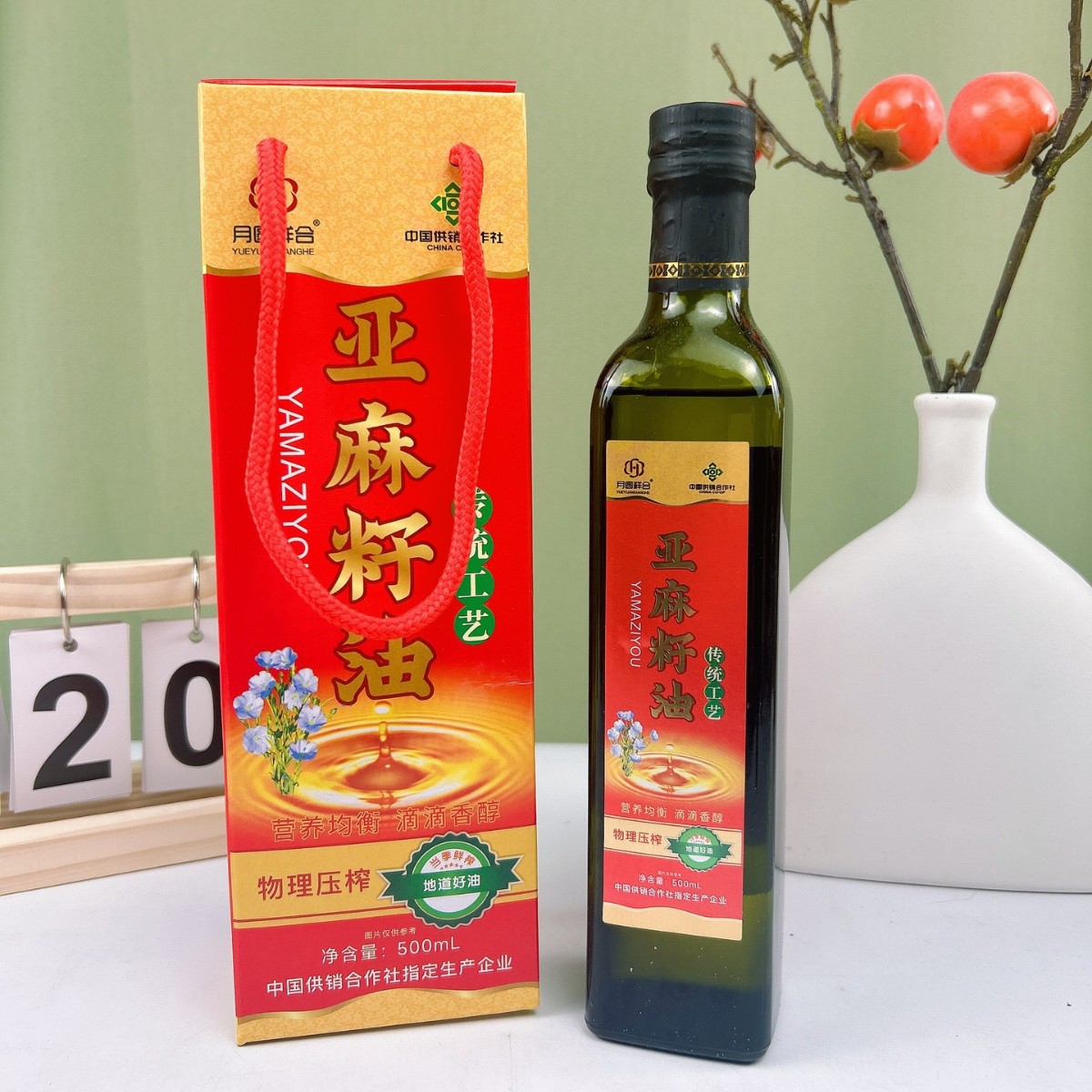 中国供給協同組合 500 ミリリットルガラスボトル純粋亜麻仁油箱入りグループ購入プライベートライブブロードキャスト顧客ロックギフト