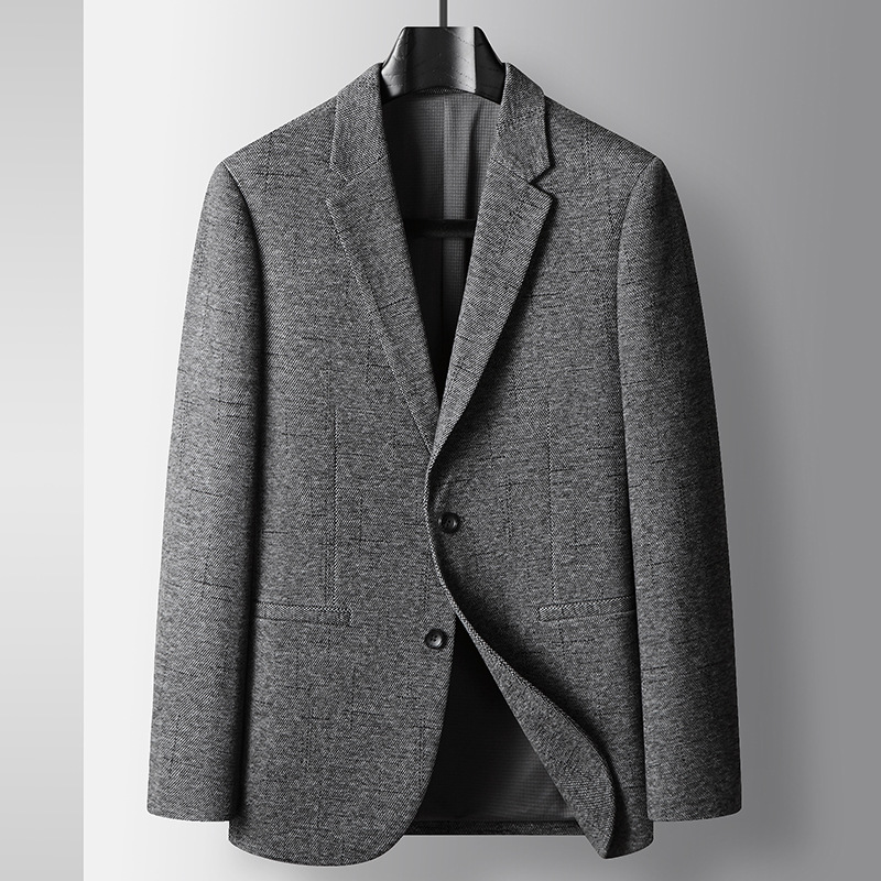 メンズカジュアルスーツ2025春秋軽贅沢ビジネスニットウールシングルスーツ中青年無地スーツジャケットトレンド