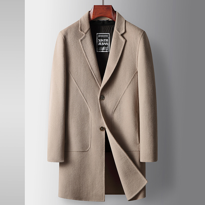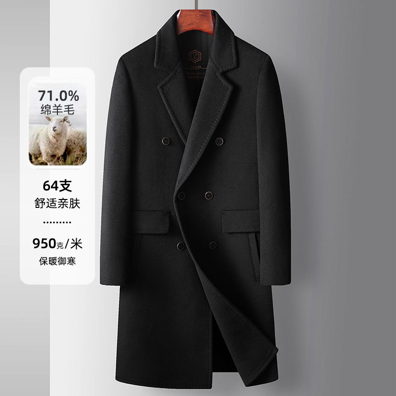 男性用コート秋冬膝丈100% ウールダブルボタン風衣青年ビジネス両面ですね保温コート