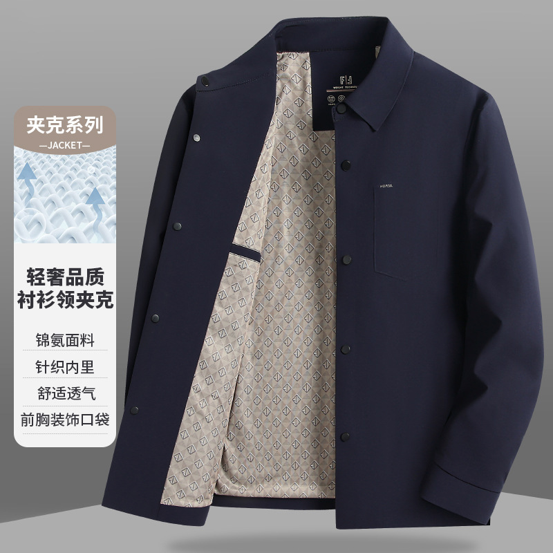 メンズジャケット 2025 春と秋の新スタイルスタンドカラーシームレスラミネートモデル中年若者高級ビジネスカジュアル薄手ジャケット