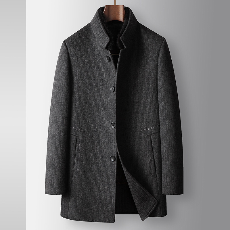 男性の毛のコート2024秋冬のミンクの毛の立襟の中で青年のビジネスはダウンの中の胆の両面のコートを外します。