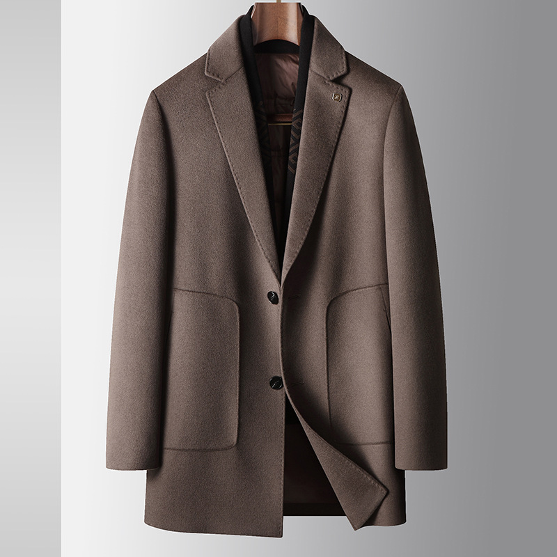 男性用コート秋冬行政襟折りカシミヤ青年高豪華ビジネスは内胆両面ウールのコートを脱ぐ