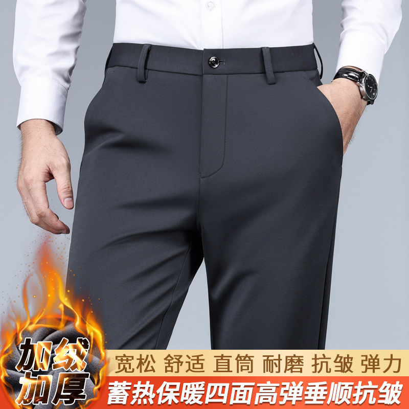 男性式カジュアルパンツ2024秋冬の四面高弾中青年は腰を緩めて、ゆったりしたストレートパンツを厚くした
